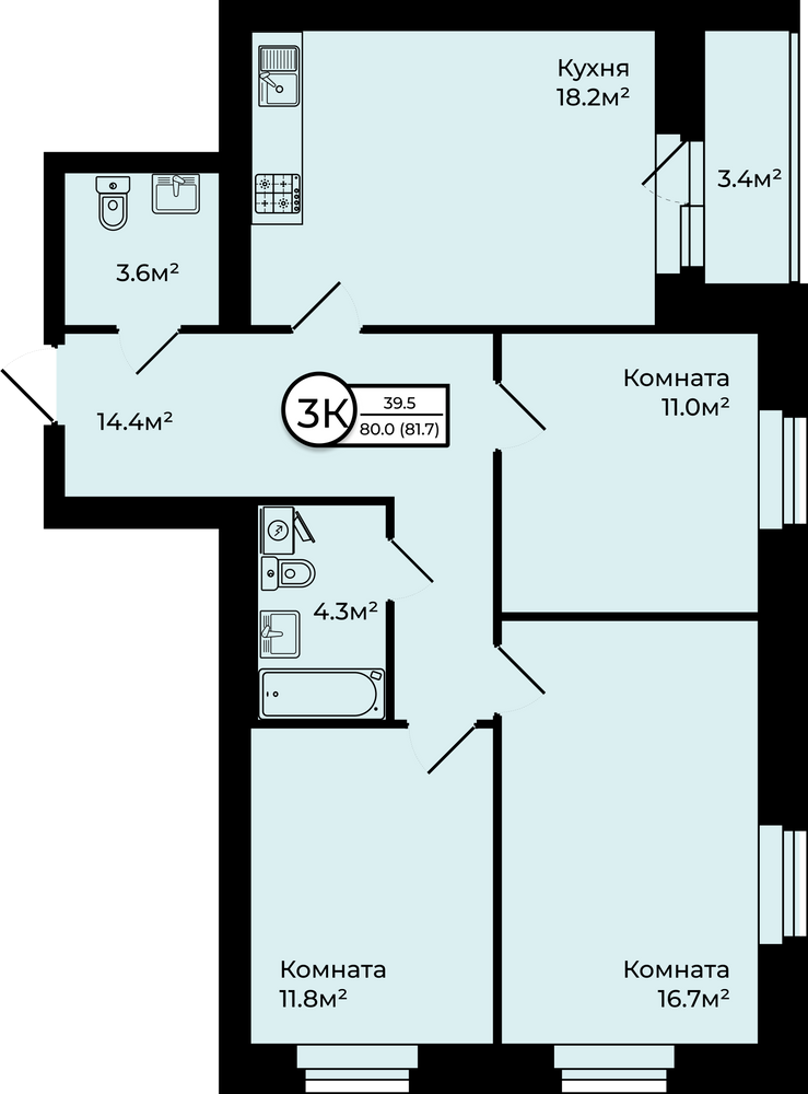 - Акция до 30.12.2025№ 79Корпус 1, Секция 3, Этаж 6