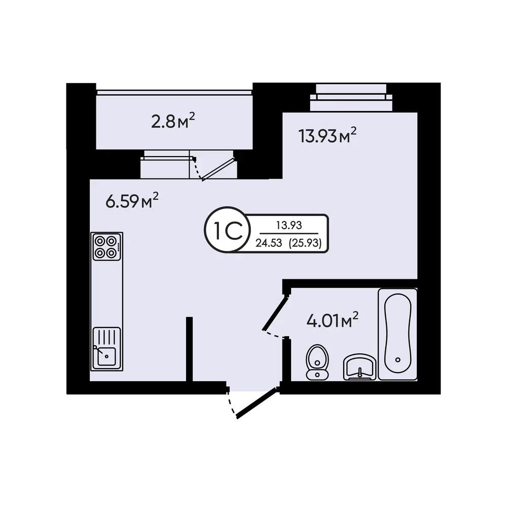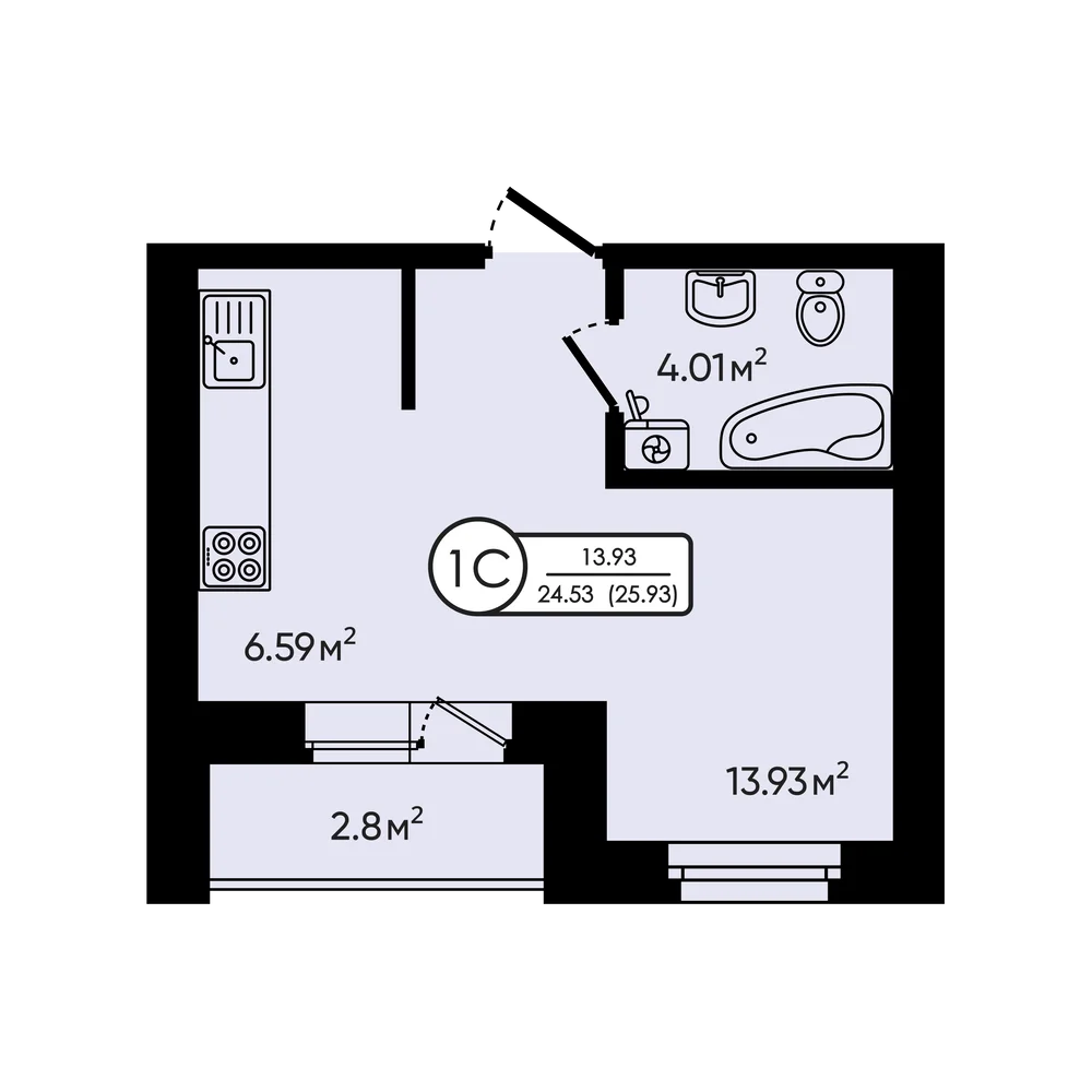 Студия 25.93 м2