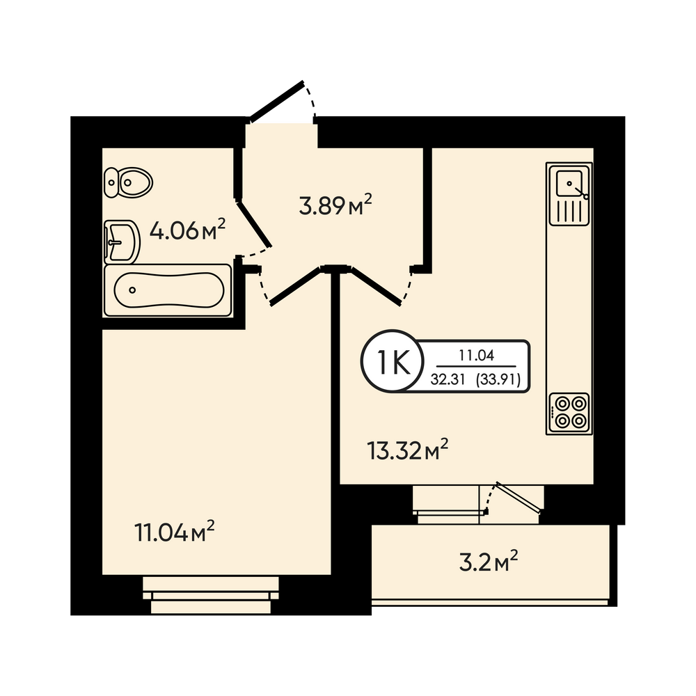 Студия 32.3 м2