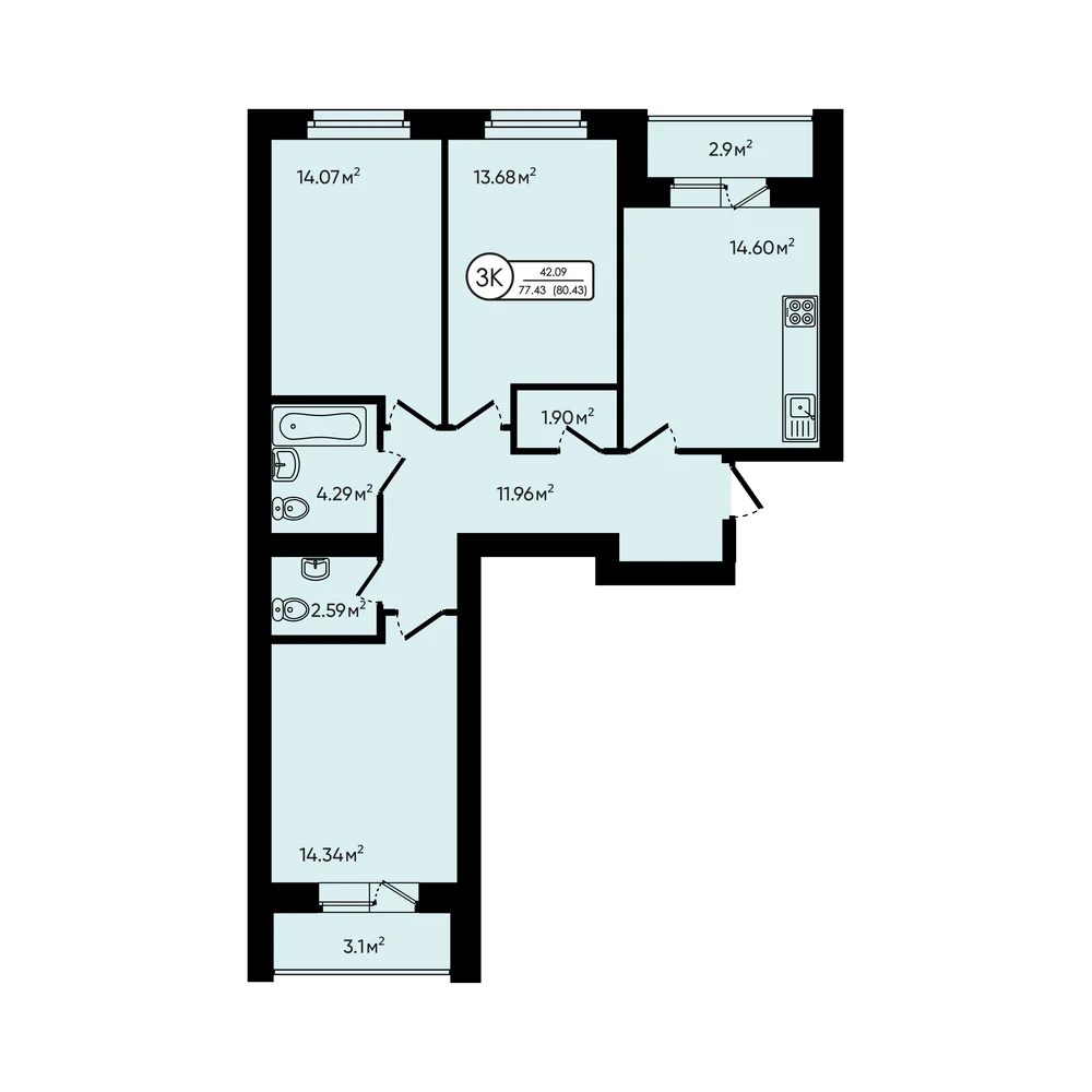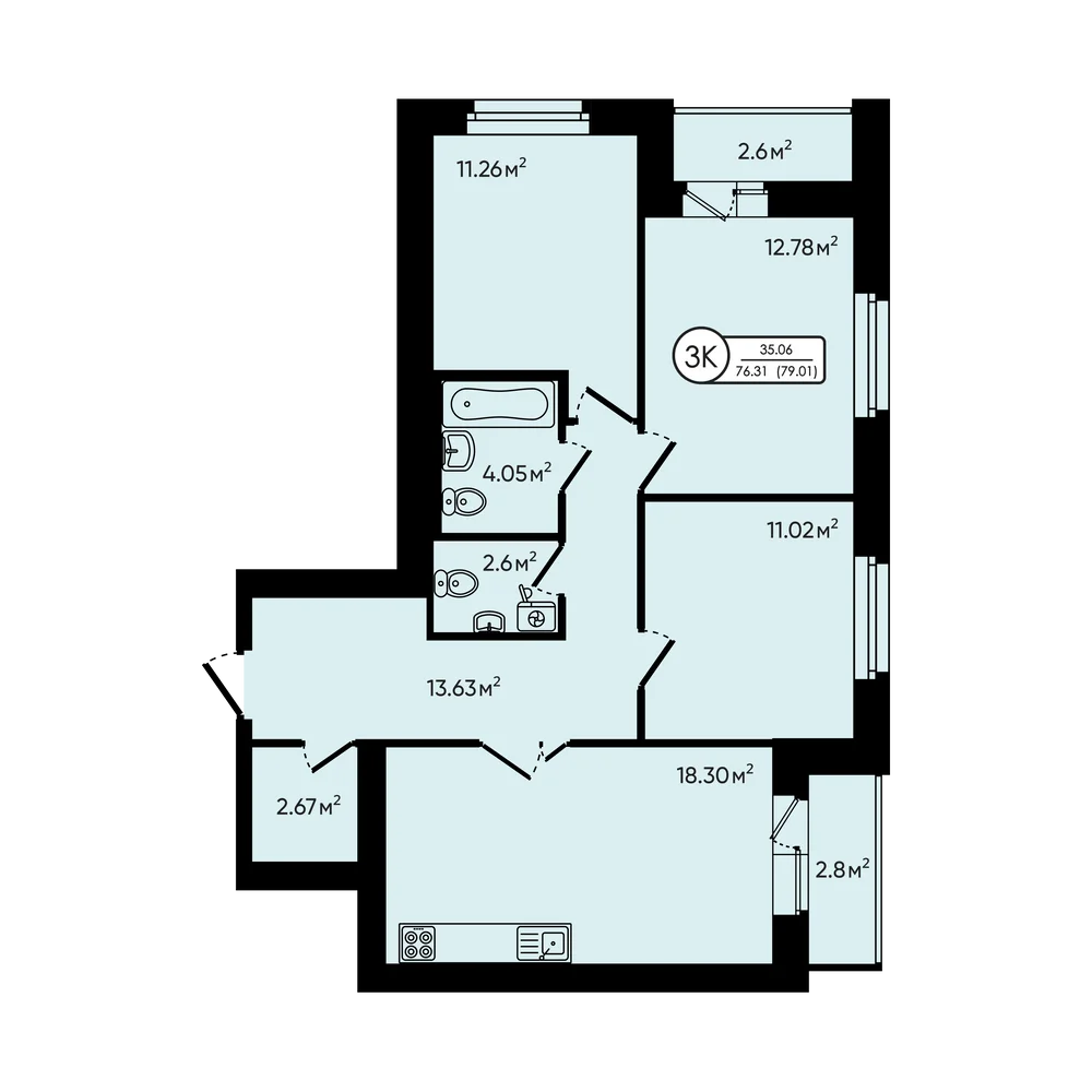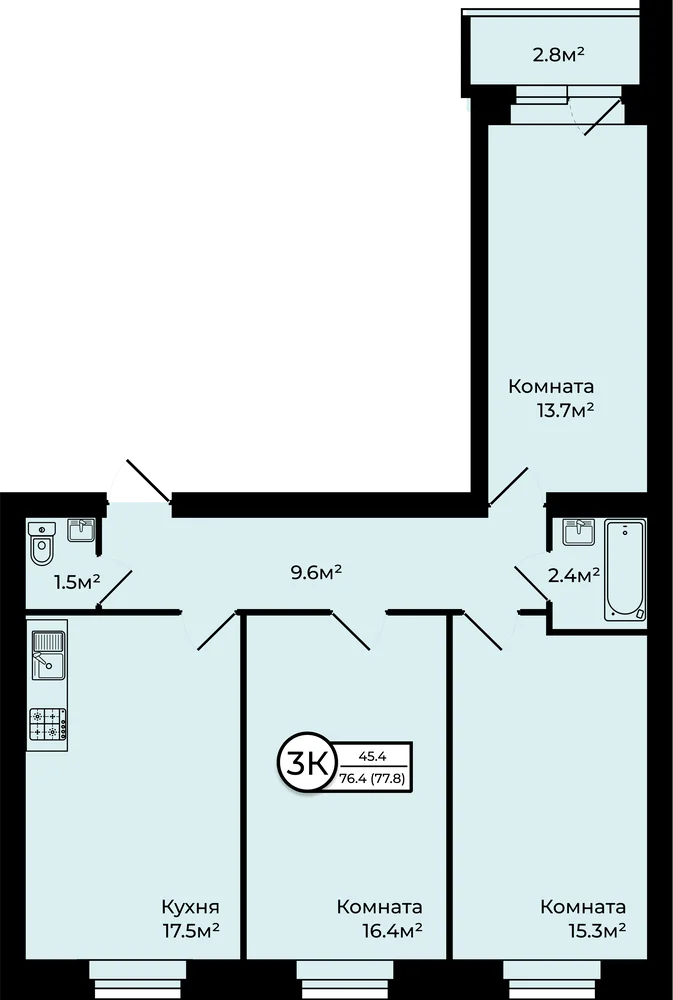 3-комнатная