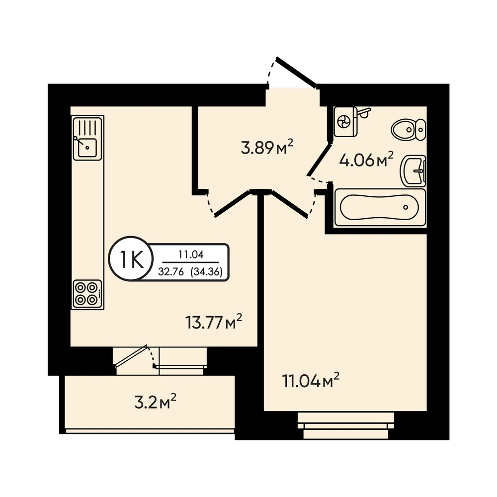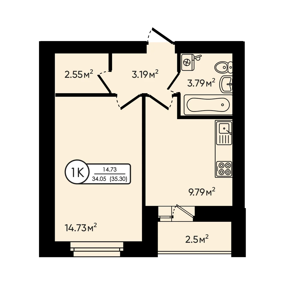 1-комнатная 35.3 м