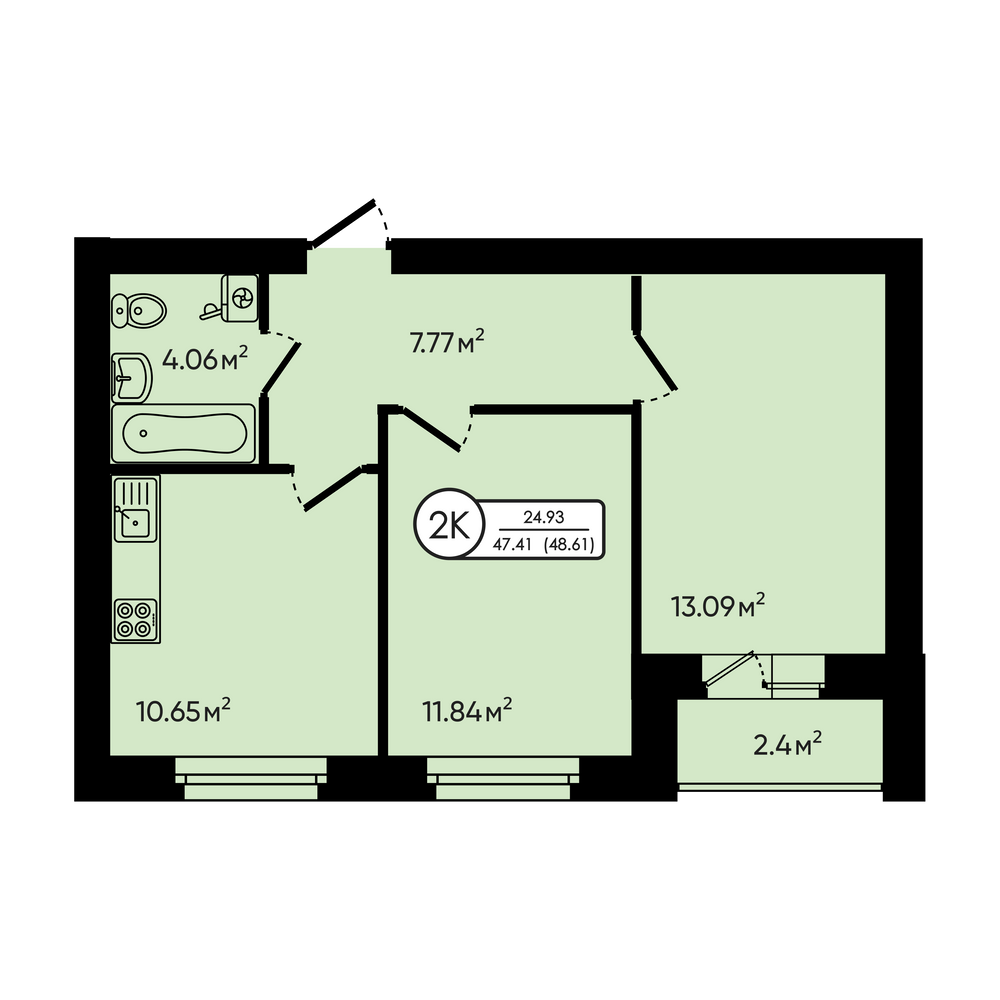 2-комнатная 49.24 м